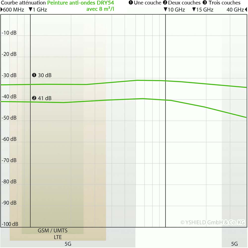 📊 Performances d’atténuation des ondes électromagnétiques de la peinture YSHIELD DRY54 :
